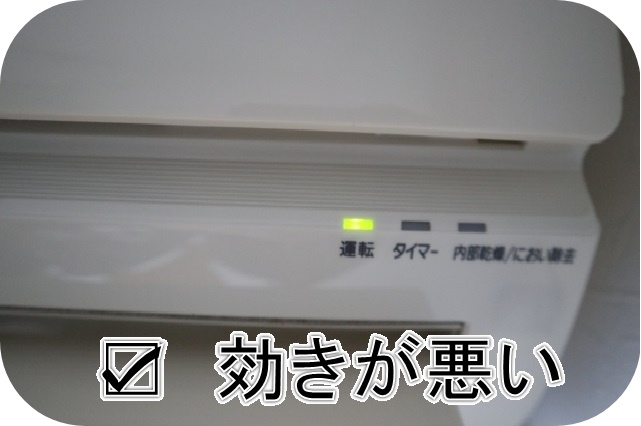 ☑水漏れ ☑異臭がする ☑効きが悪い ☑勝手に止まる ☑異音がする
